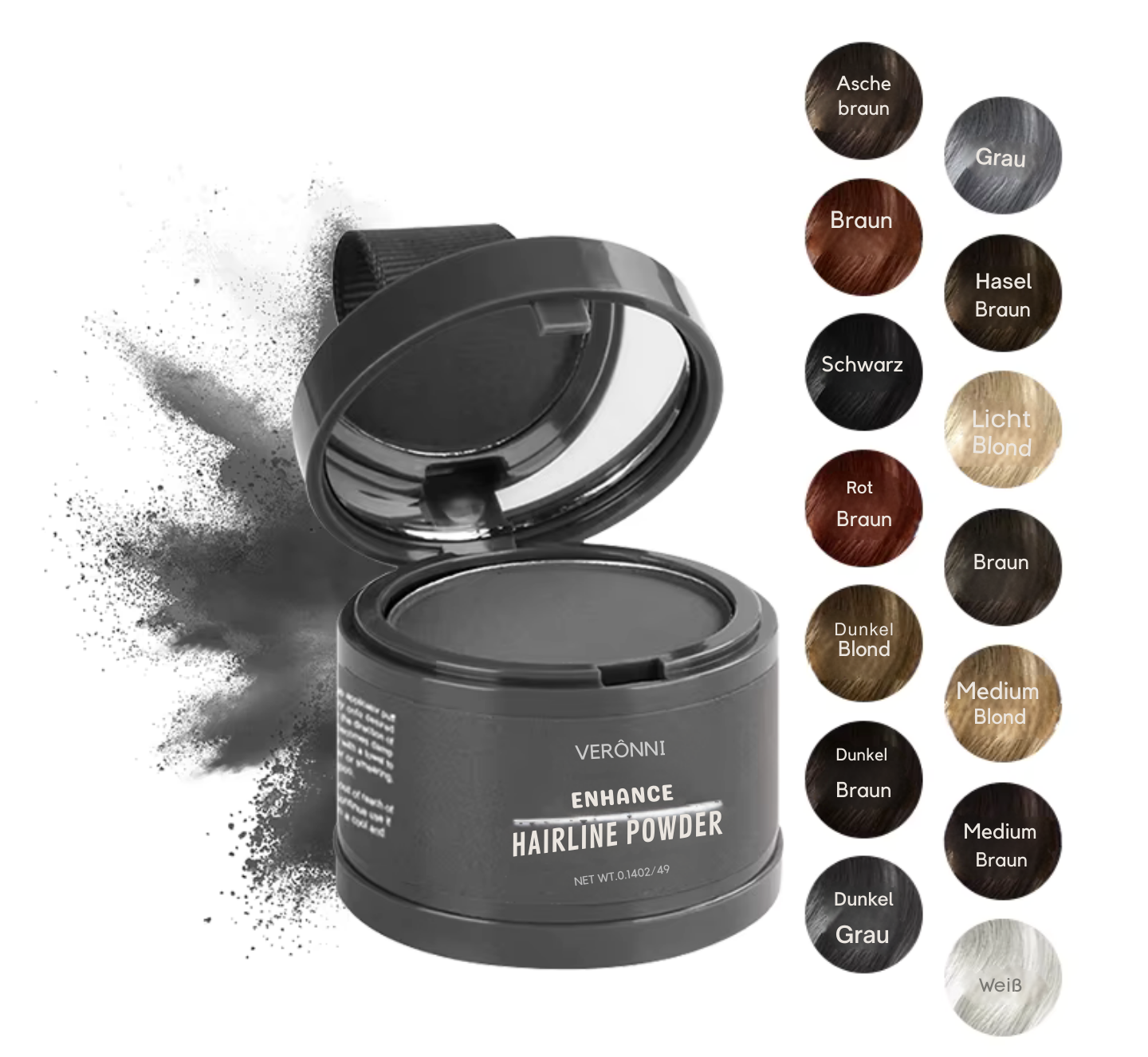 Erleben Sie sofort mehr Selbstbewusstsein mit dem Haarlinien Puder – Ihrer Geheimwaffe für einen perfekt verdichteten Haaransatz. Ob lichte Stellen am Scheitel, an den Schläfen oder am Haaransatz: Das ultrafeine Puder kaschiert in Sekunden und verleiht Ihrem Haar optische Fülle und Natürlichkeit.