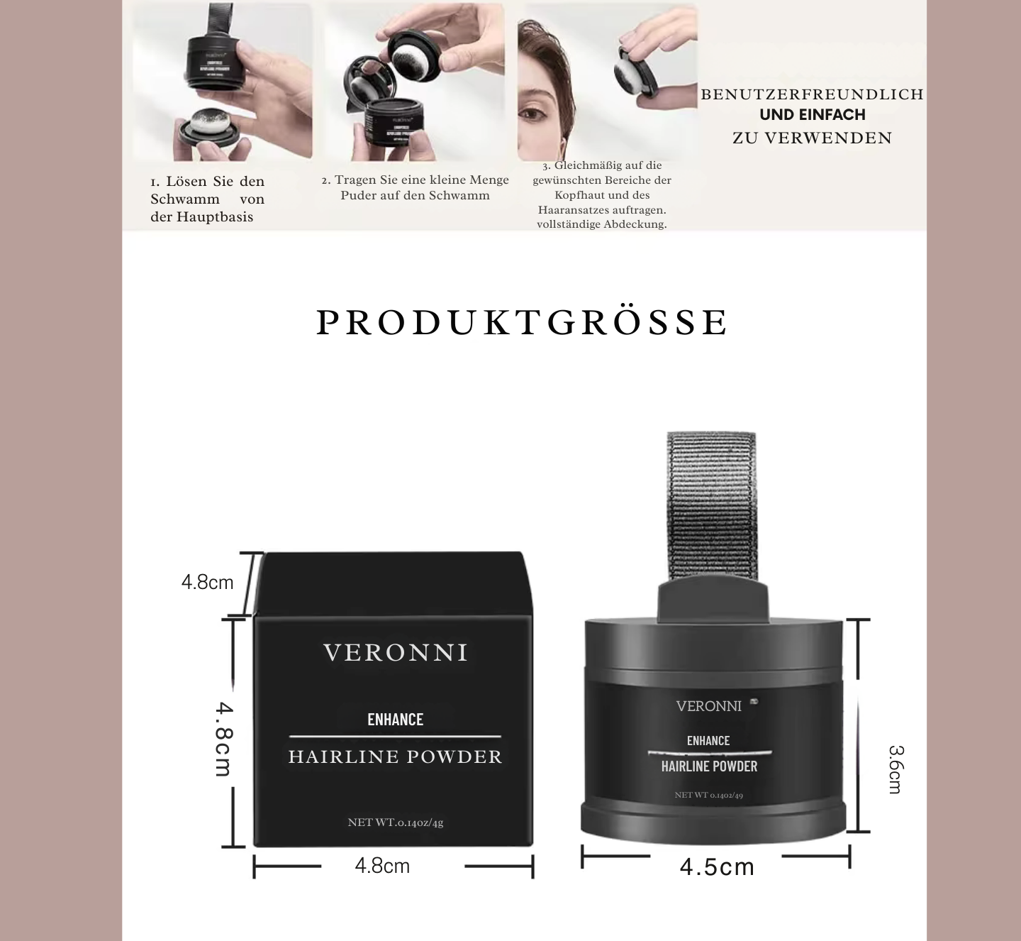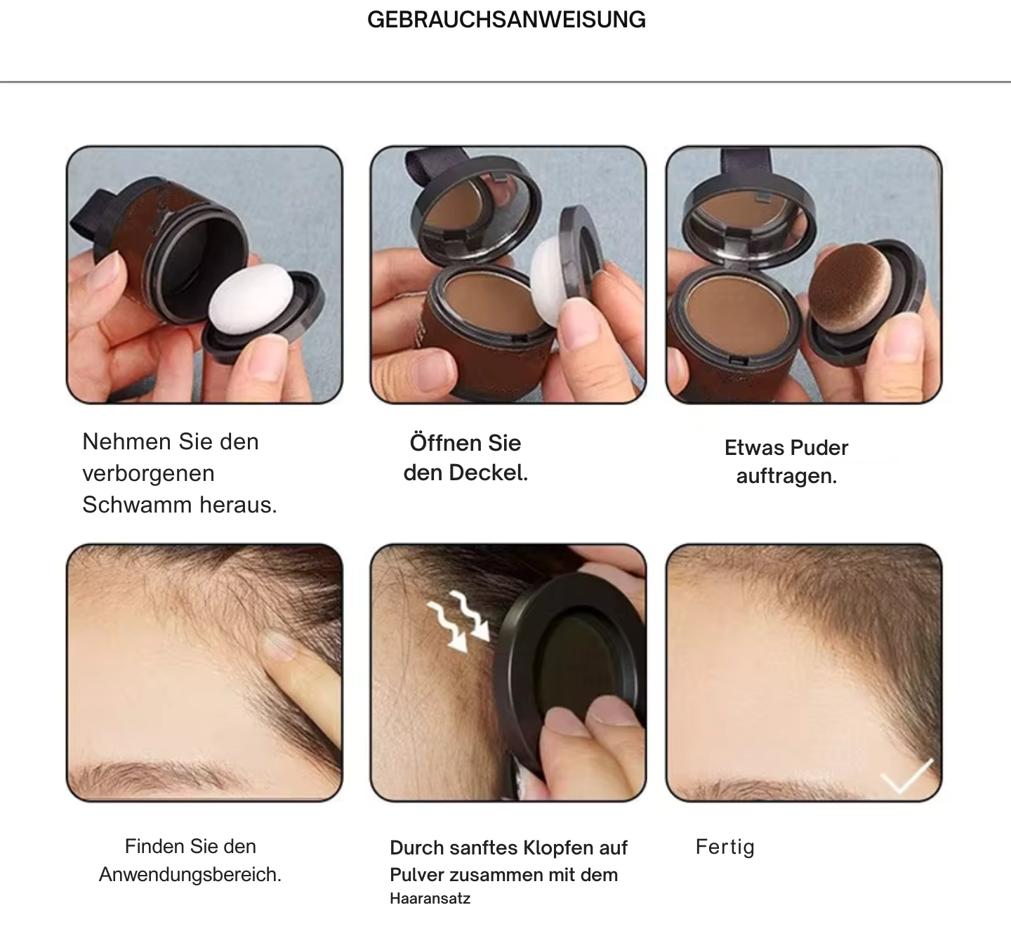 Für wen geeignet? Egal ob Frau oder Mann – das Haarlinien Puder ist ideal für alle, die kleine Makel kaschieren und ihrem Look mehr Ausdruck verleihen möchten. Perfekt für Alltag, Job oder besondere Anlässe.